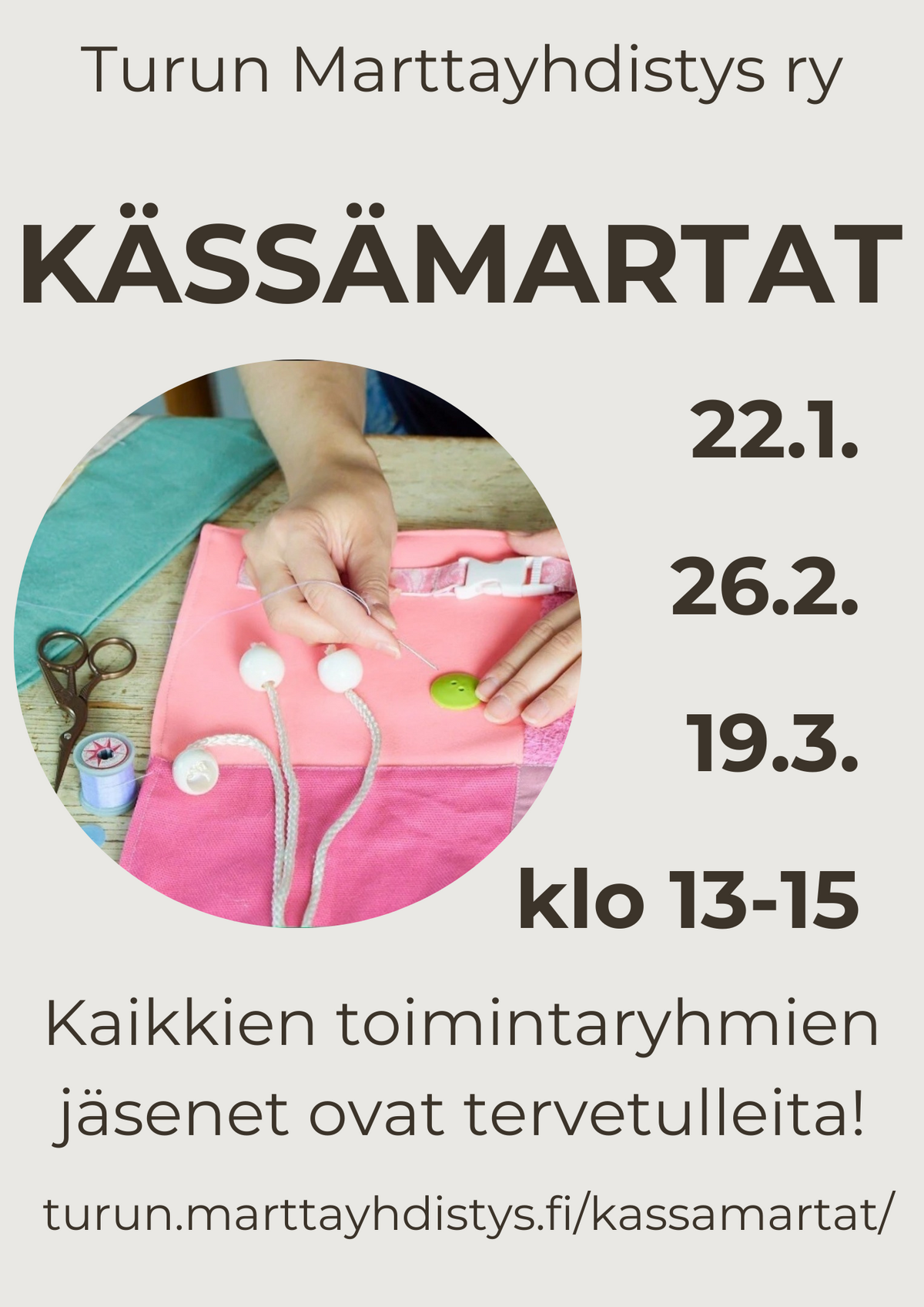 Kevään 2026 seuraavat kässämarttojen tapaamiset ovat 26.2. ja 19.3. (Huom! Helmikuun päivä muuttunut aiemmin ilmoitetusta).