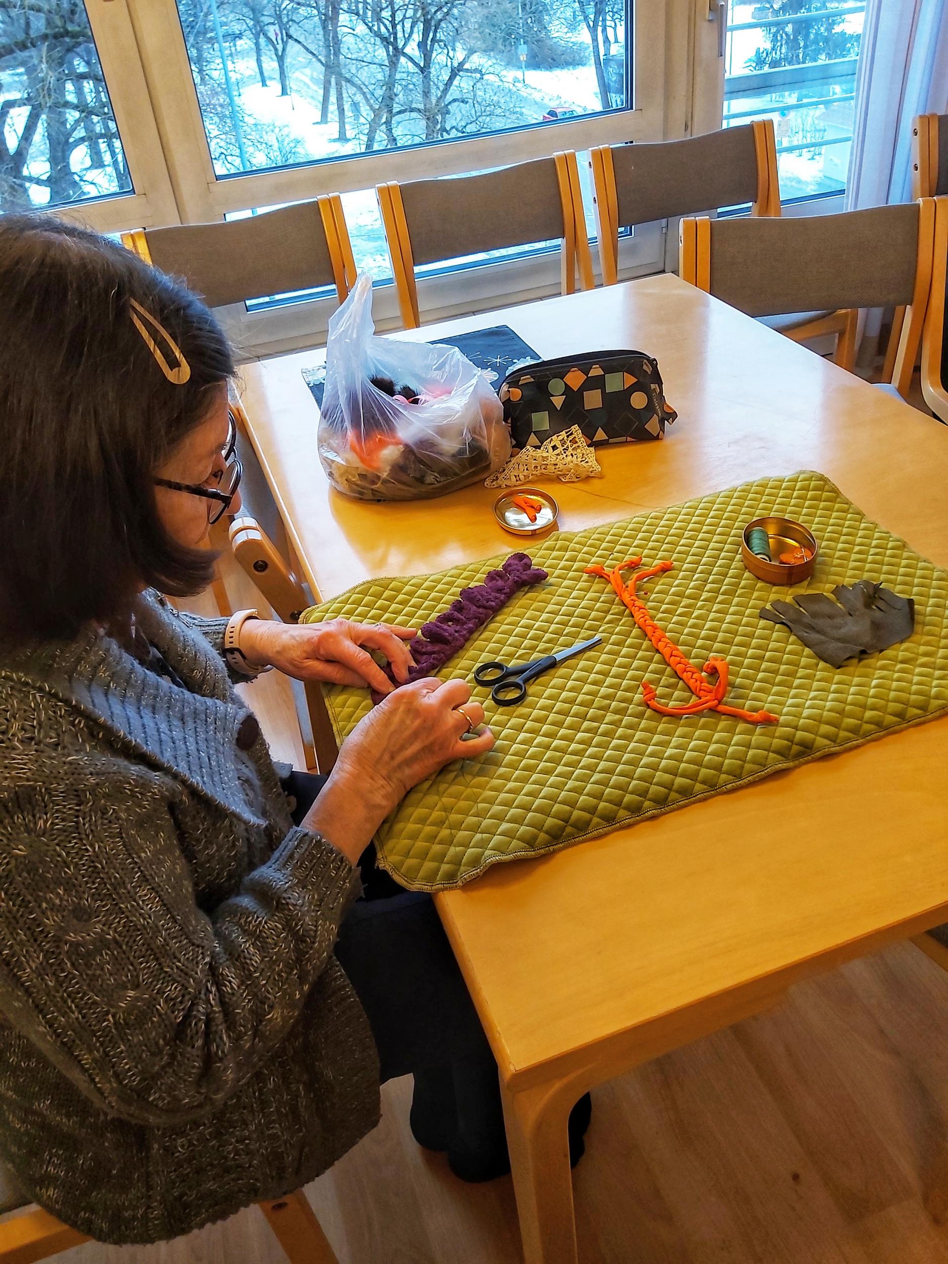 Kokoontumisissamme meillä on eri käsityöaiheita, mutta aina voi olla mukana tekemässä vain omaa työtään. Paikalle saa tulla myös vain tutustumaan meihin ja kyselemään toiminnastamme. Otamme mielellämme vastaan kaikenlaisia ideoita toimintaamme liittyen.